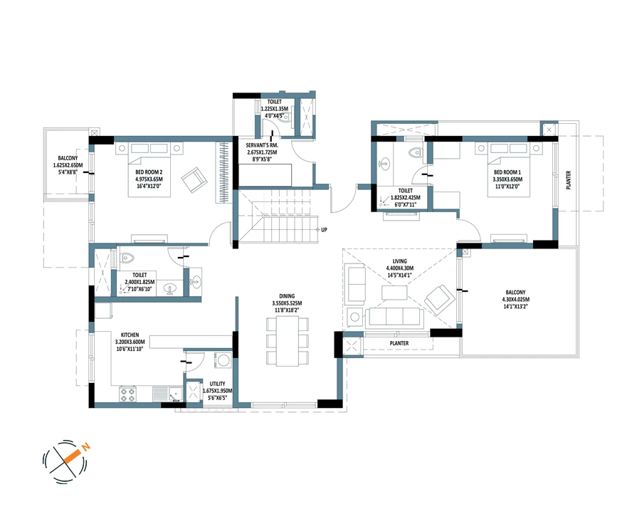 This Vaastu-compliant expansive 4BHK unit, located on the ground floor of Block C, offers six generously sized rooms, including a 560 sq. ft. living and dining area, a 543 sq. ft. master bedroom, and three additional spacious bedrooms, each with its own en-suite bathroom. The unit also features five large balconies, four planter boxes, an entrance hall, and a dedicated pooja and bar area.